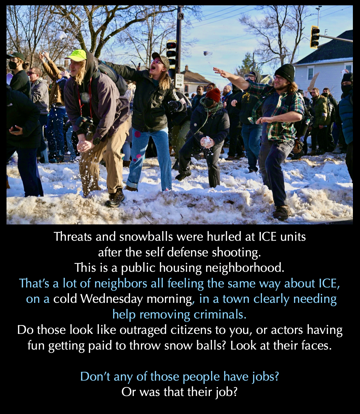 The White Hats have the capacity to trace every cell phone of each bystander who was at the apparent road block in Minnesota on January 7, 2026. Will they find payments from a Soros group for their fine acting job inciting civil unrest and agitating ICE agents?