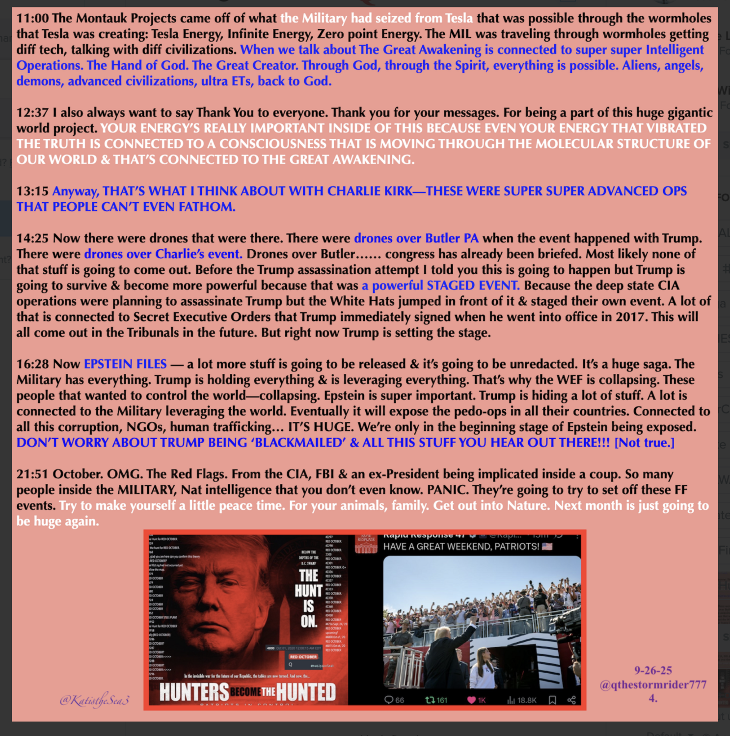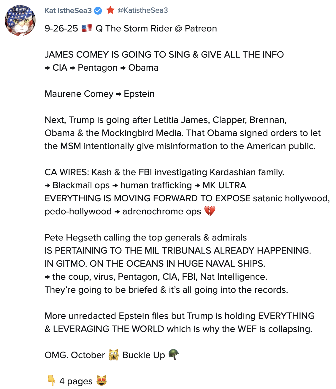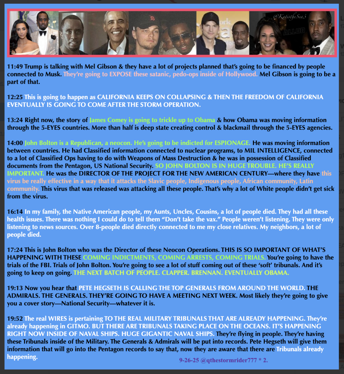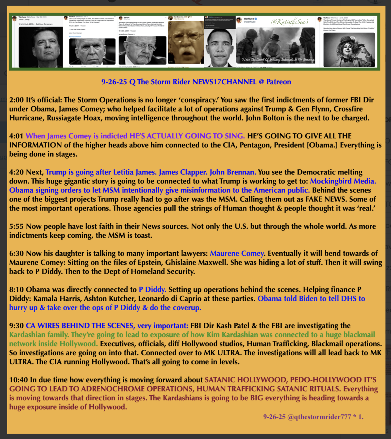 Anons, Digital Soldiers, Patriots and some MAGA, have known for YEARS, all the dirt that’s FINALLY coming out about THE CIA, COMEY, CLAPPER, BIDEN, BRENNAN, FBI, OBAMA, MOCKINGBIRD MEDIA, MIND CONTROL, NETANYAHU, THE PENTAGON, P. DIDDY, KARDASHIANS, SATANIC HOLLYWOOD, EPSTEIN, WEF ETC.., AND ALL THE VERY POSITIVE MOVES PRESIDENT TRUMP AND THE WHITE HAT MILITARY, PUTIN, XI ETC. HAVE BEEN MAKING TO SAVE THE WORLD. IT’S SPRUNG A LEAK. A TYPHOON OF TRUTH WILL SHOWER THE WORLD OVER THE NEXT TWO YEARS.
