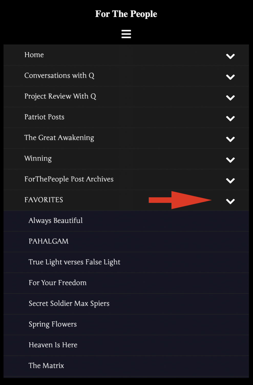 Each upside down pyramid on the right side of the MENU BAR, will open to reveal all posts under that heading. Simply click on the upside down pyramid corresponding to the menu title you are interested in.