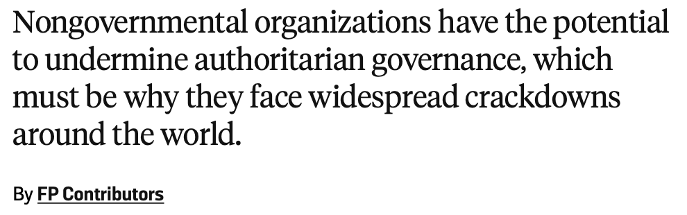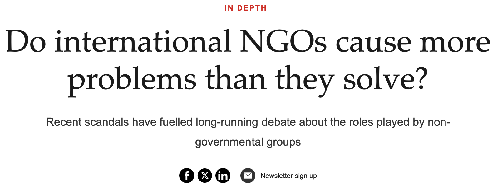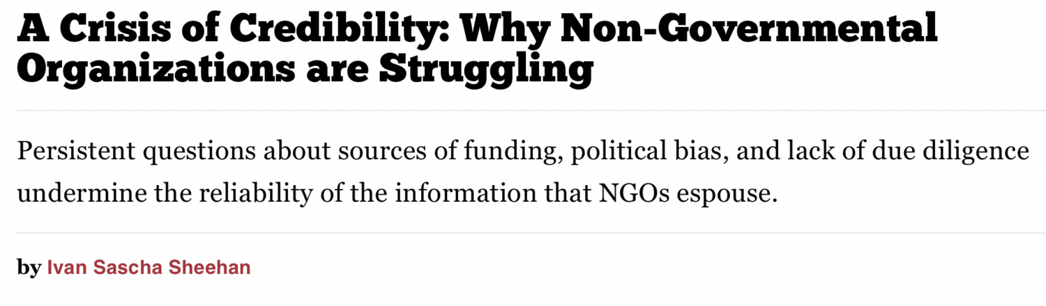 Over the years, there have been many critiques of NGOs. Journalist Michael Hobbes has written about how NGOs, among other entities, have “turned the language of human rights into meaningless babble.”