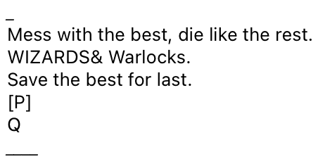>>> WIZARDS AND WARLOCKS