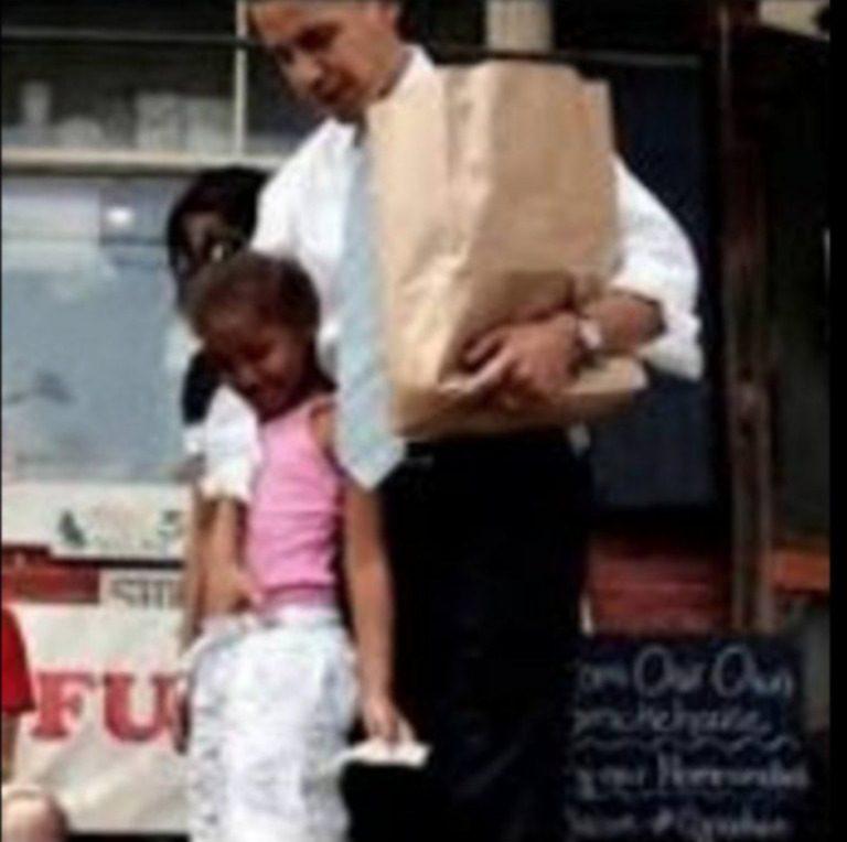 Obama with his hand down the front of his rented daughters pants in public