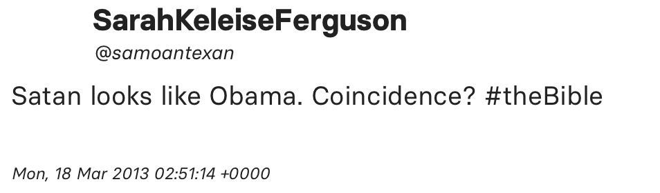 …religions that have come together around a set of shared ideas. We are still at a place where anybody has a chance to make it through misleading and dishonest practices if they try. If that wasn’t true, then somebody named Barack Hussein Obama, from Kenya, from Africa, would not be president of the United States.”