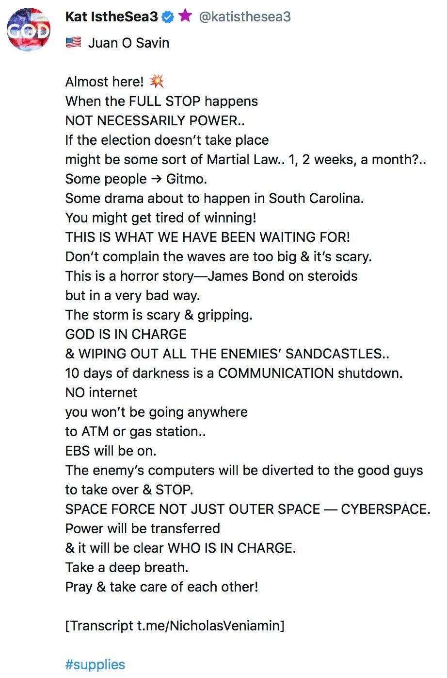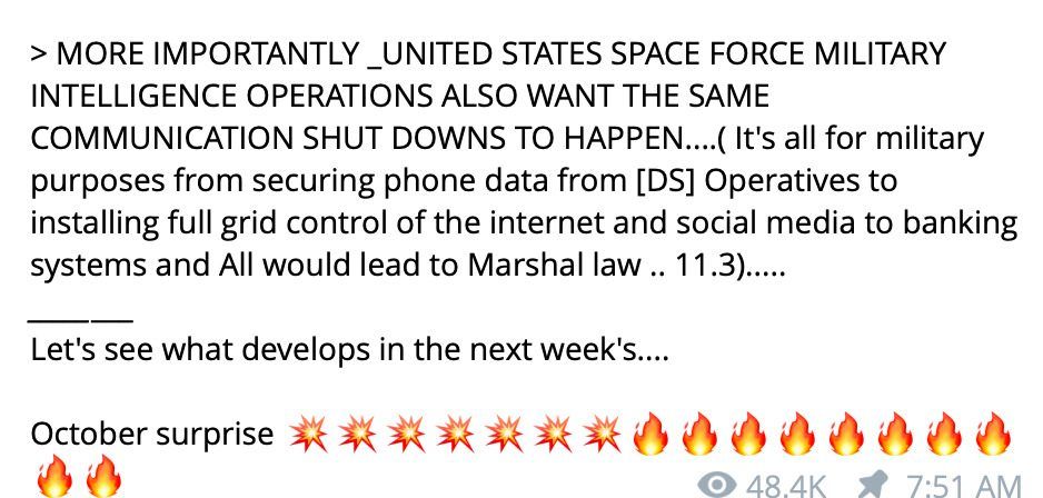 “Then around October 29th due to the rituals and what they have done in the past (satanic rituals the deep state observe, Halloween, is when these satanists feel they get the most power from Satan because they increase child sacrifices).