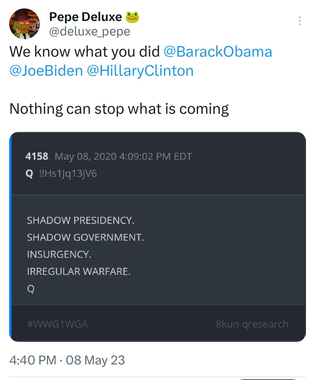 Times are different now. White Hats in control...SLOW DRIP TO WAKE THE NORMIES