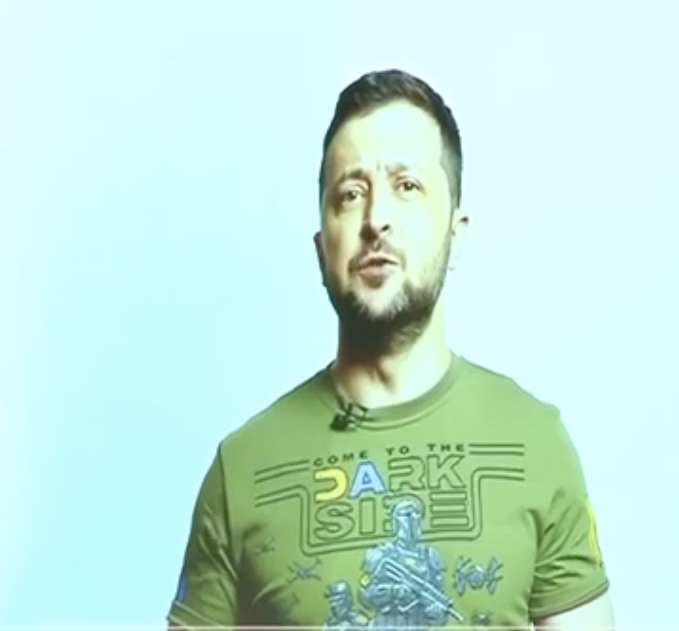 Zelenskyy in a public video wearing a STAR WARS T-Shirt: COME TO THE DARK SIDE