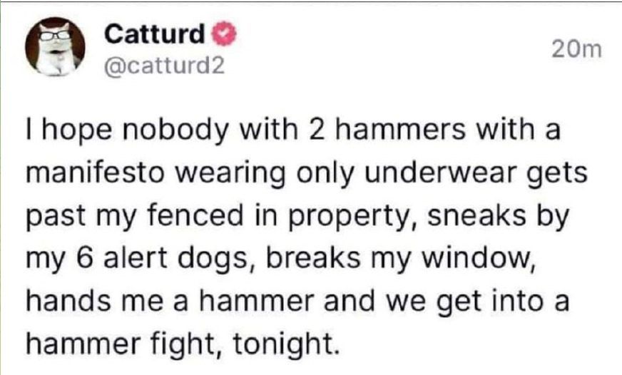 ~ Have you ever heard of a hammer wielding terrorist stopping to tell you his name and make friends with you prior to a political attack?