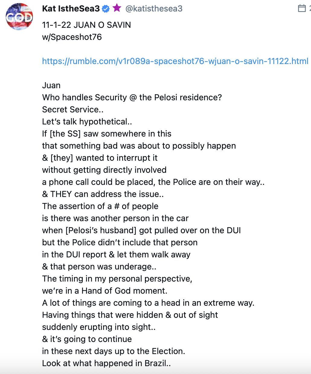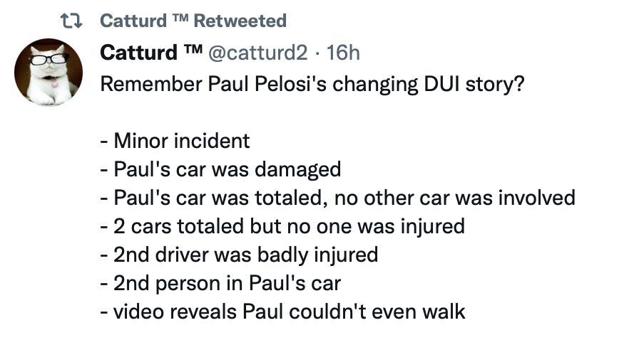 Instead, Paul Pelosi was attacked, suffered head injuries, was taken to the hospital and apparently released days later, according to a few reports.
