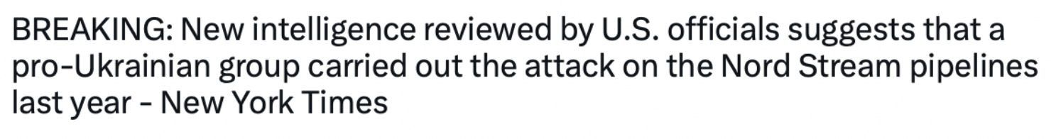 > As you know The New York ( CIA) times have changed their story from RUSSIA blew up the Nord Stream and now too UKRAINE blew up the pipe lines.