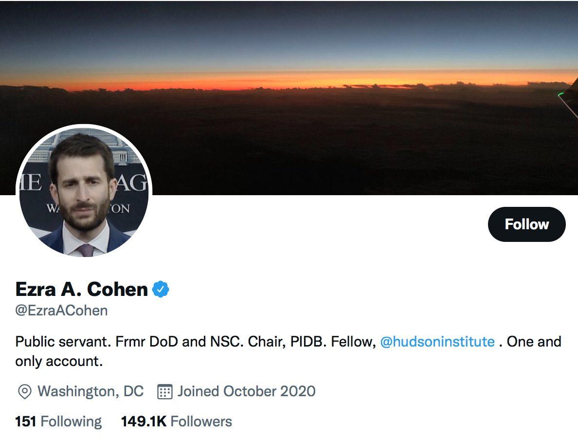 Ezra A. Cohen states above that Twitter is his ONE and only account.