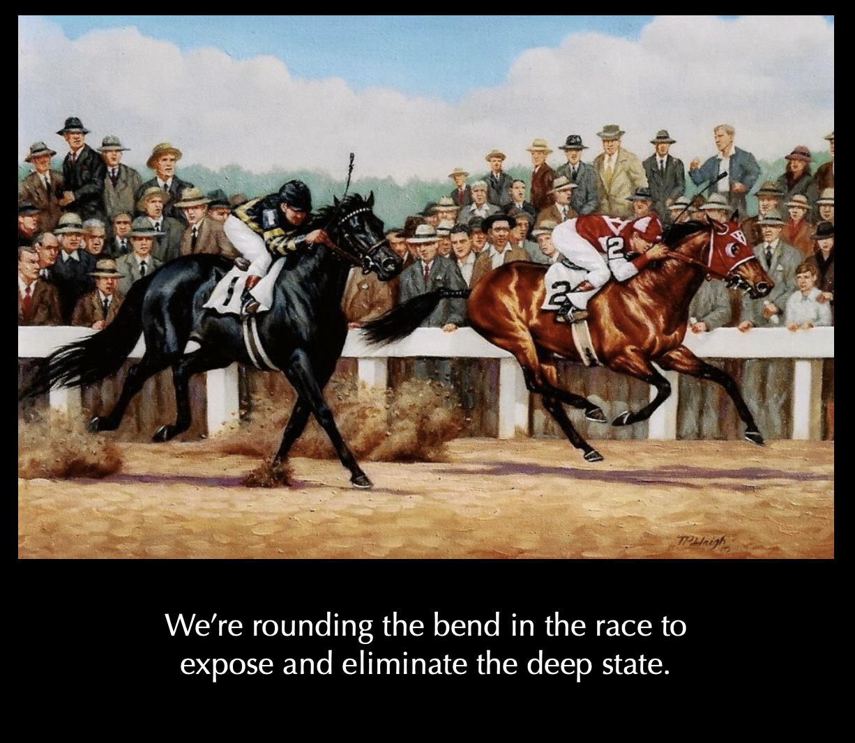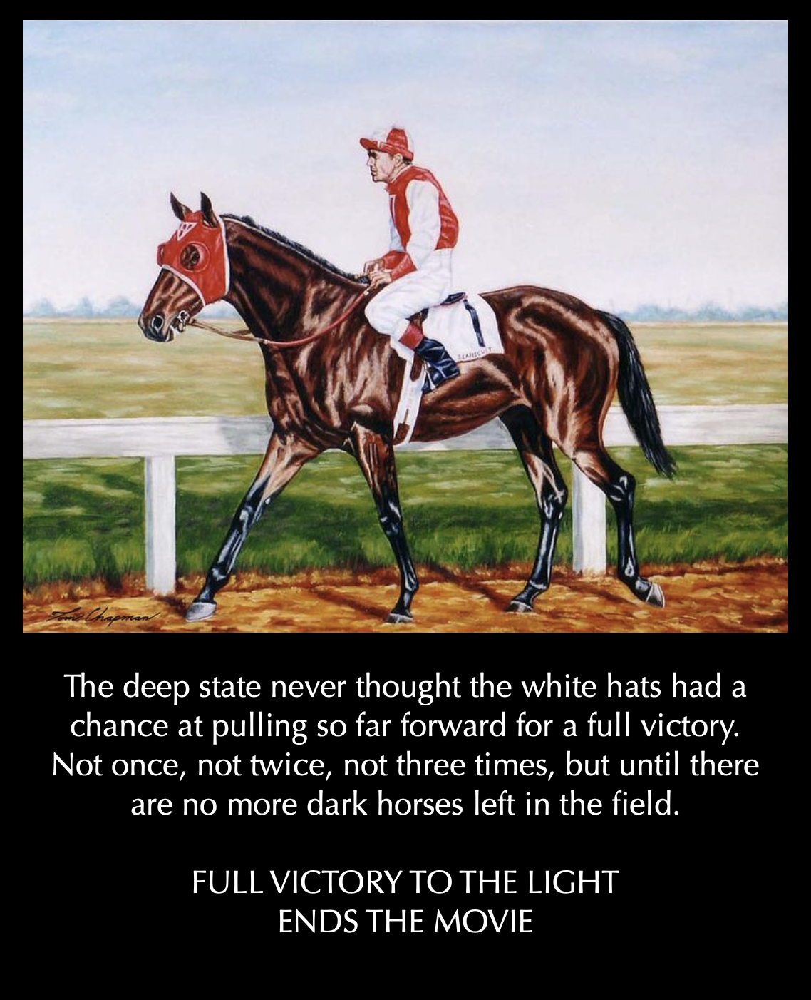 We’re rounding the bend…we can almost see what will happen. The mob, the swamp, the satanic clan of pedophiles, witches, monsters, demons and devil worshippers all bet on the wrong horse and they’re in for a loss like never before. There is no coming back after this defeat.