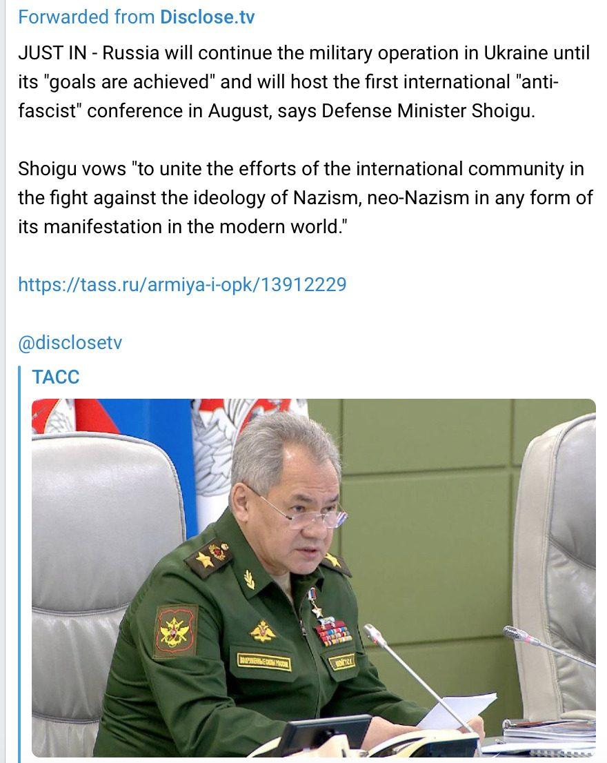 RUSSIA DEFENSE MINISTER TO UNITE INTERNATIONAL COMMUNITY IN FIGHT AGAINST THE IDEOLOGY OF NAZISM, NEO-NAZISM IN ANY FORM