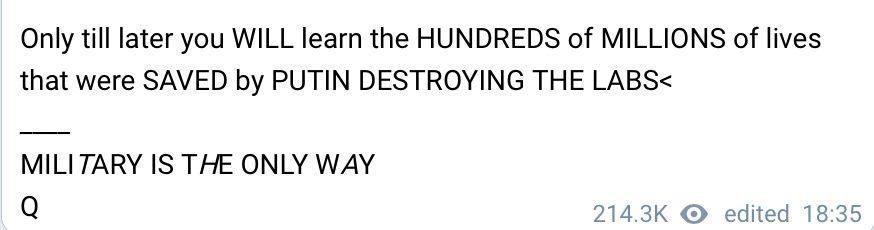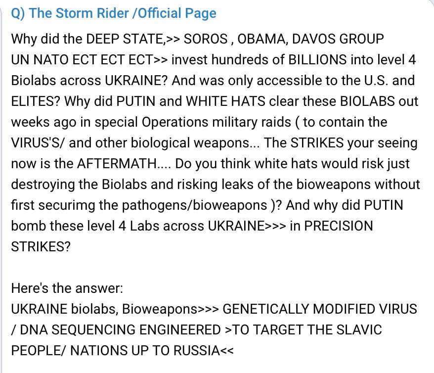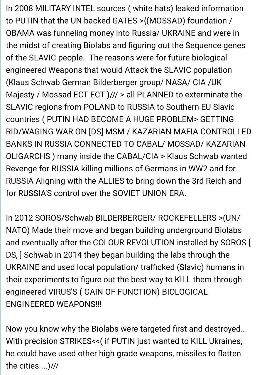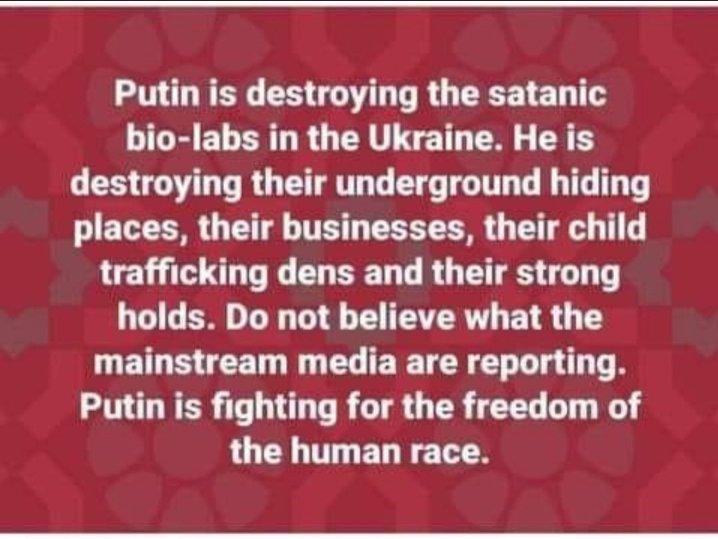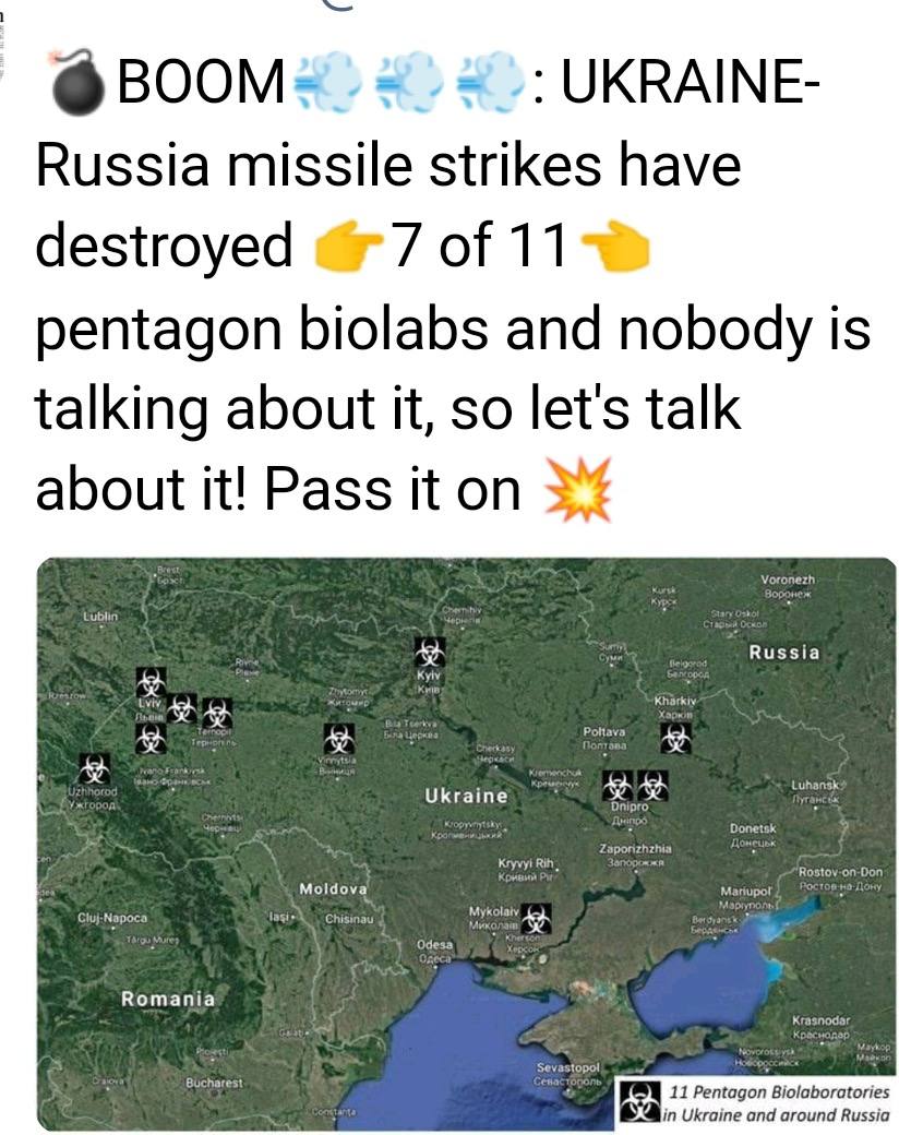 Putin is taking out deep state black op bio labs with precision strikes, who have been trying to create killer diseases right on Russia’s border.