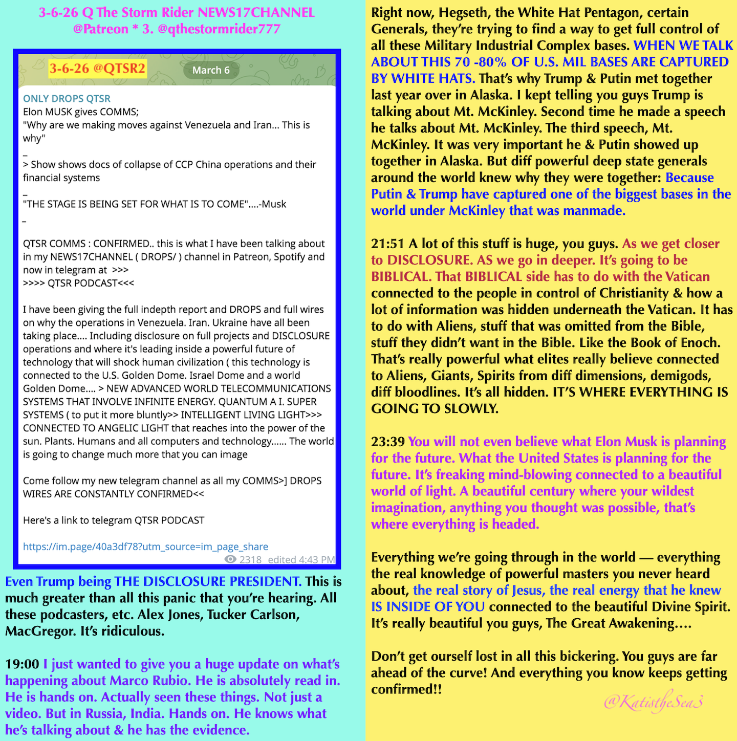 Kat’s transcript contains important excerpts. To hear and see QTSR delivering his videos, you can join his channel on Patreon with this link: