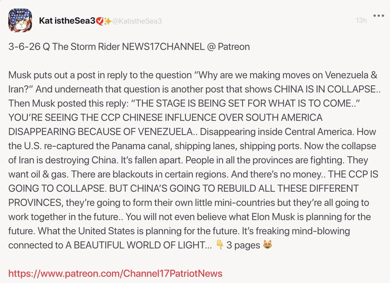 A video by Q) The Storm Rider / NEWS17CHANNEL on Patreon,