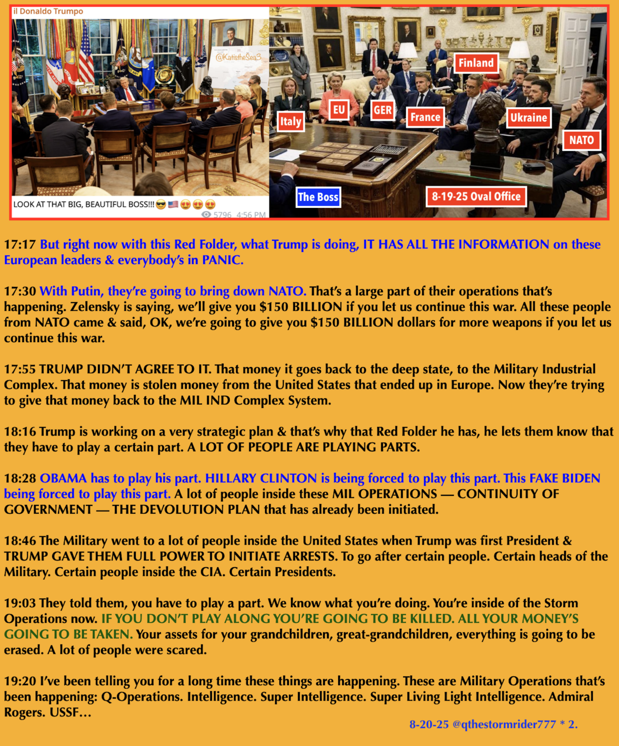 Kat’s transcript contains important excerpts. To hear and see QTSR delivering his complete videos, you can join his channel on Patreon with this link: