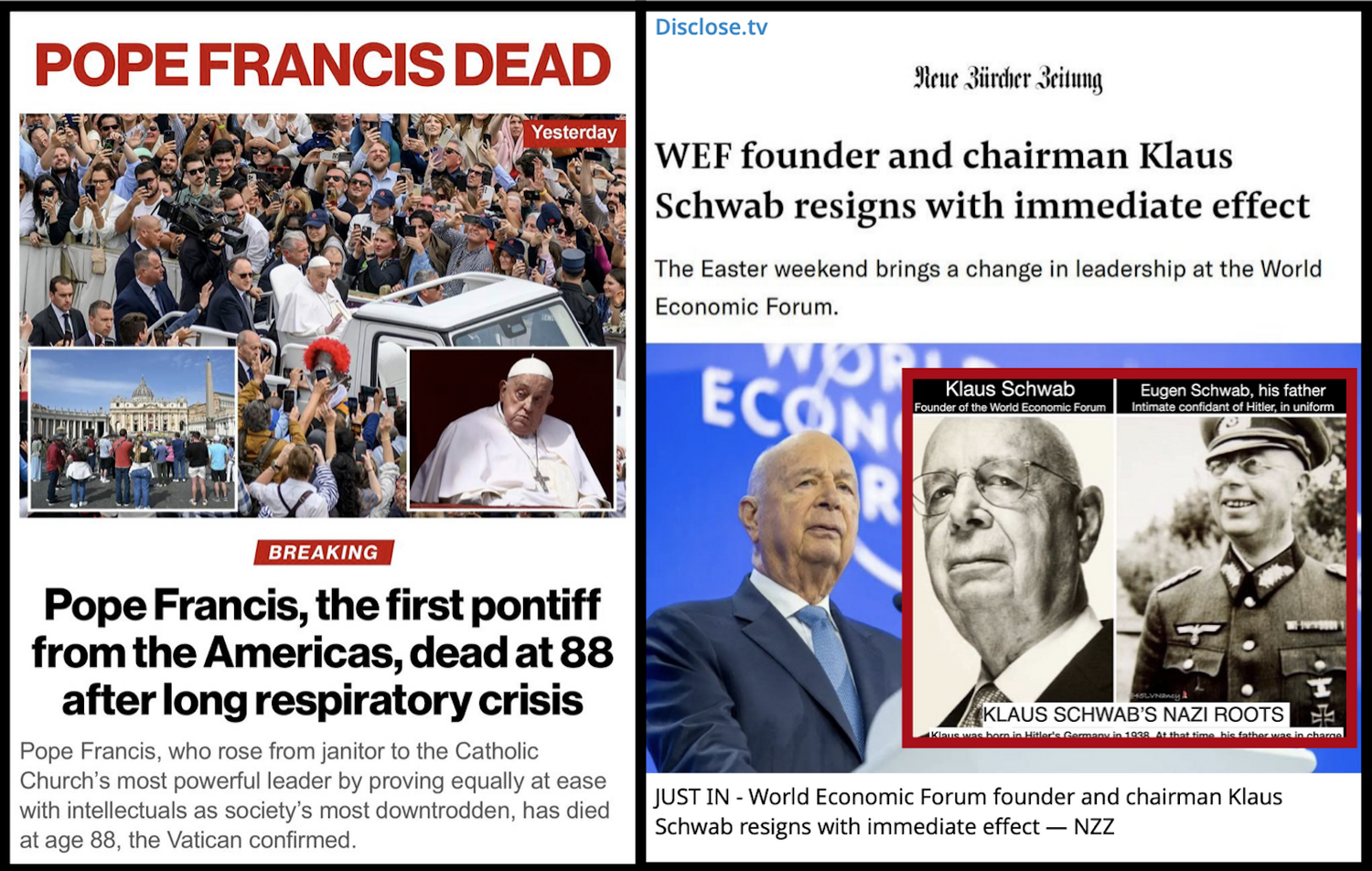According to QTSR, the death of the Pope and the resignation of Klaus Schwab were comms to the Deep State Satanists that their networks are being dismantled and leaders are being taken out.