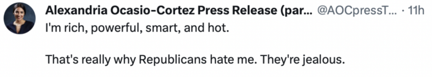 AOC’s rise to the top was not an accident, she was a planned, packaged and processed candidate sold to a hungry young generation by a slick and shallow media. Empty calories Cortez.”