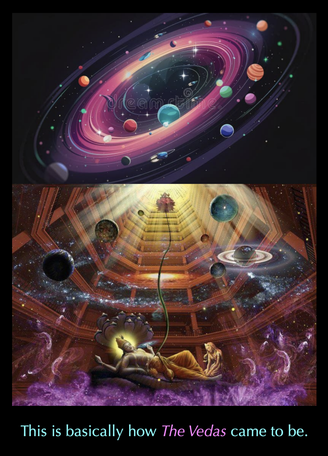 In 1947 at Roswell, a Light Being named Airl, in the form of a Grey Alien, was interviewed and asked about the Vedas; this great holy scripture the humans believe came from the Gods. Airl basically giggled and told a story similar to the one above. What this planet calls the Vedas, were not delivered as a holy text or even guidance. They were meant for fun and play between Light Beings.