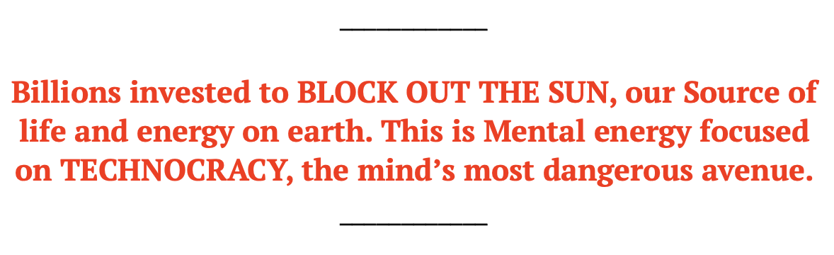 (Technocrats apparently believe culling humanity and nature is a way of saving humanity and nature. This is the insanity of mental energy.)