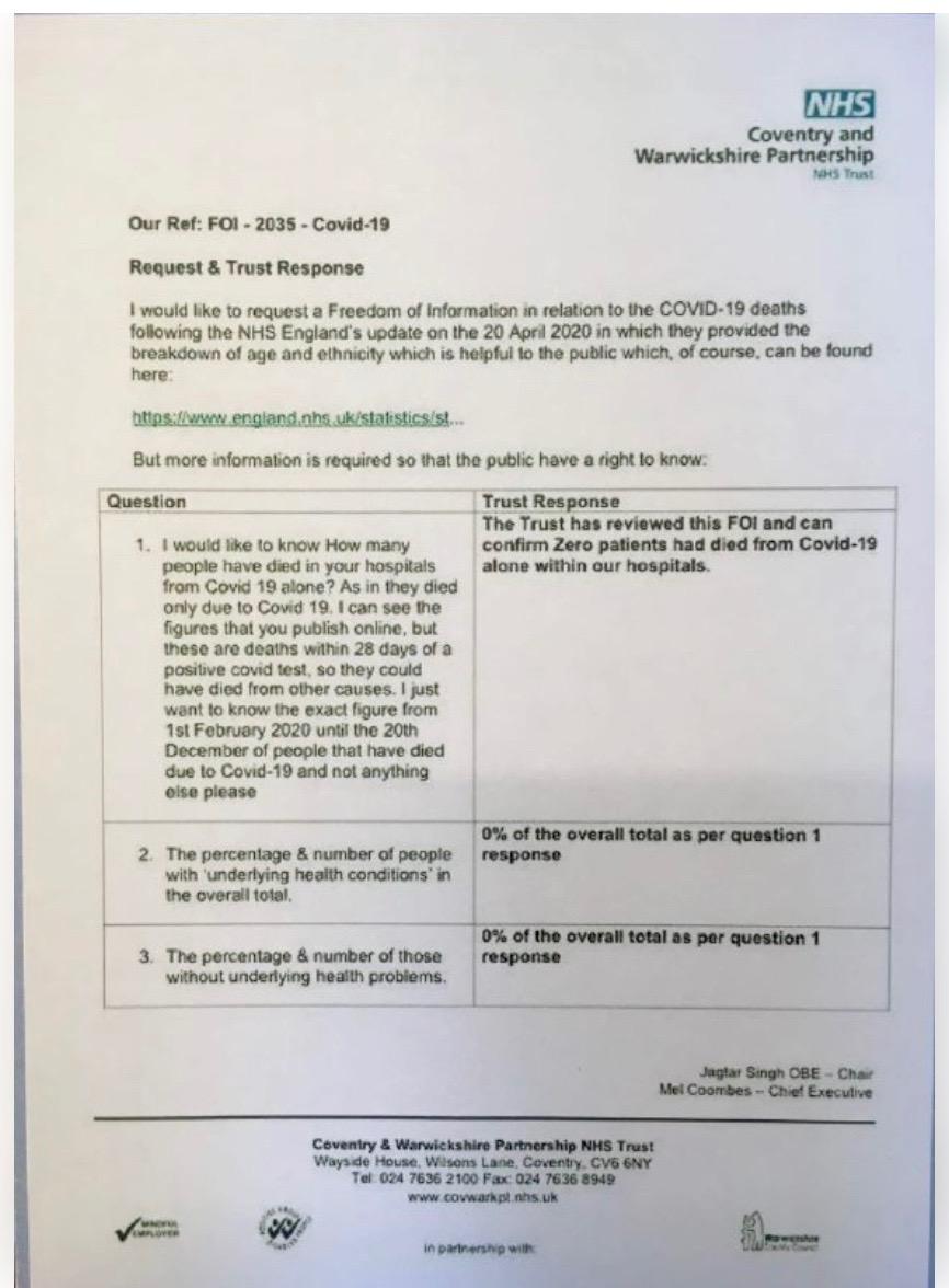 NHS England’s update confirm ZERO patients died during peak of pandemic from Covid-19 alone in English Hospital… below