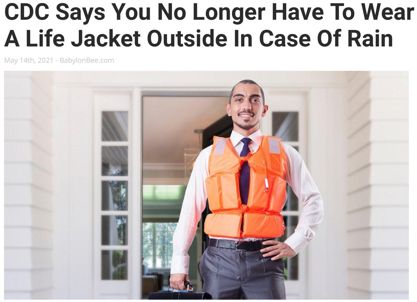 ATLANTA, GA—The CDC has updated its guidelines and announced that you no longer have to wear a life jacket outside in case of rain. The guidelines had been put in place last year during a particularly rainy March, and although many experts had claimed we would just have to wear the life jackets for a couple of weeks, mandates remained in place for well over a year…