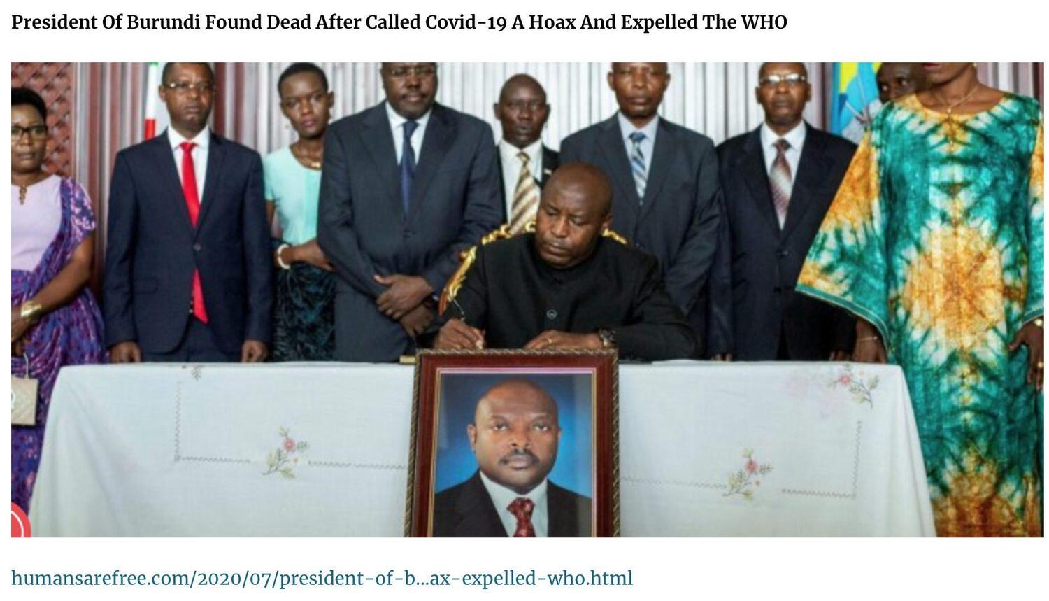 PRESIDENT OF BURUNDI FOUND DEAD AT 55 YEARS OF AGE FROM AN APPARENT HEART ATTACK AFTER EXPELLING THE WHO AND CALLING COVID-19 A HOAX.