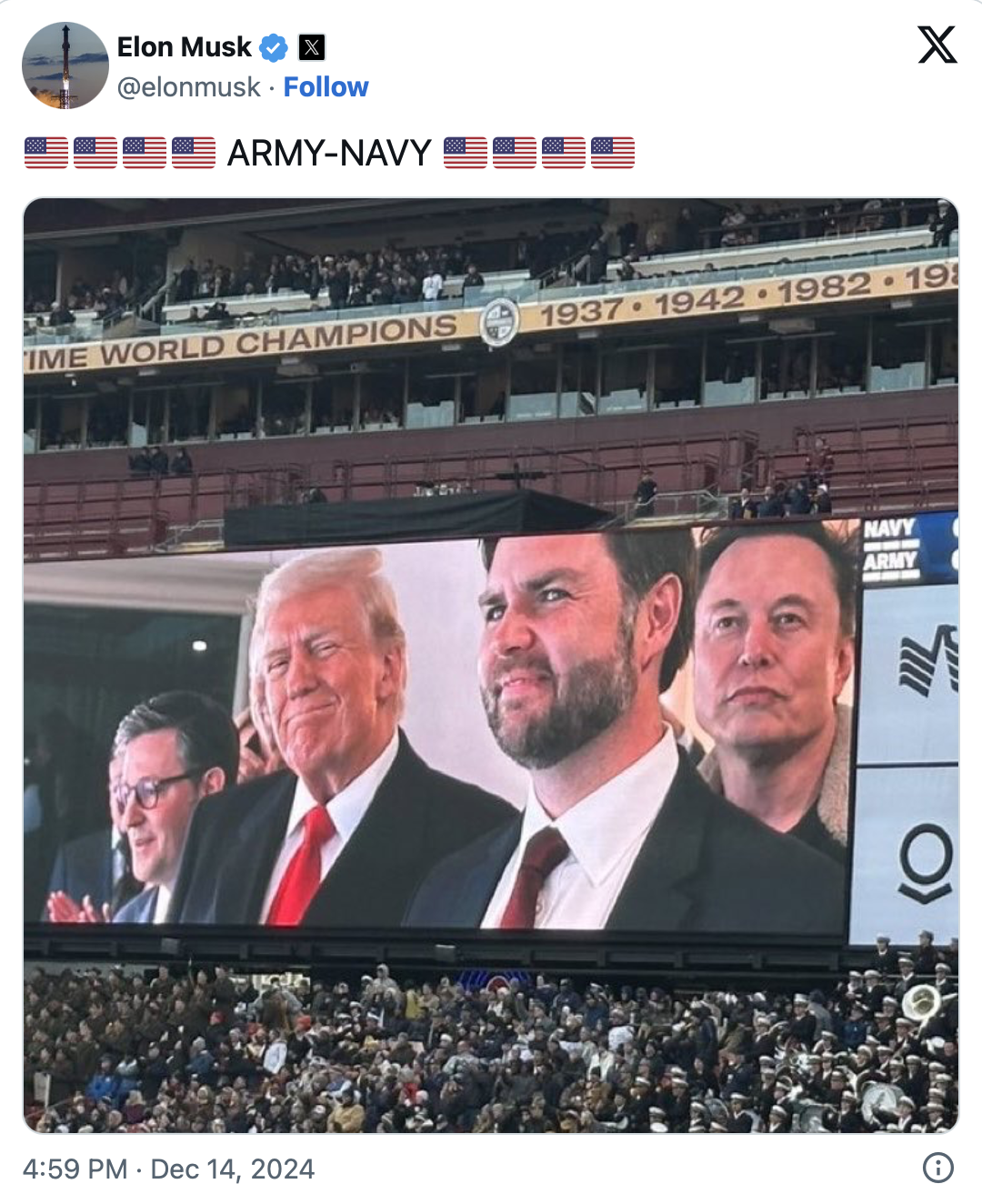 The event’s timing is also significant. As Trump prepares for his return to the White House, the Army-Navy game serves as a reminder of his ability to command attention and shape narratives, even in non-political settings.“