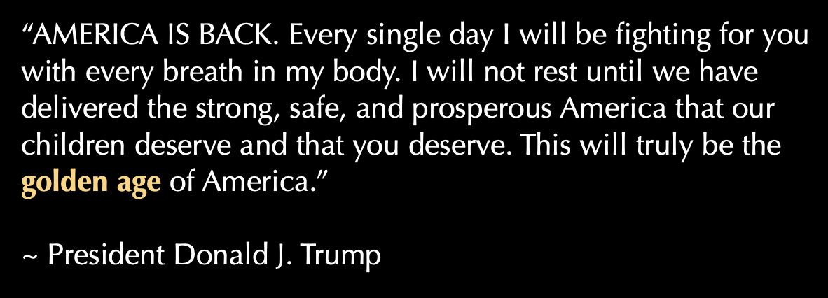 The Love of a ManWisdom The Golden Age Posted January 20, 2025 For The People ____________ BEGINS ____________ ____________ ____________ President Trump’s Celebratory Victory Rally https://t.co/MCKNpDh8kG— Donald J. Trump (@realDonaldTrump) January 19, 2025 ____________ _______ ForThePeople