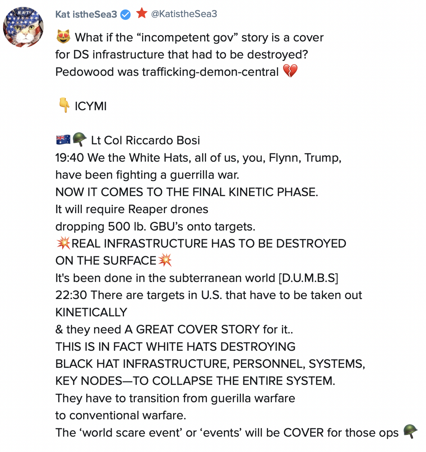 There have been some very brave PEOPLE who have forgone the easy life to protect all of humanity. They know what has to be done; they have been doing it for a very long time. We could call them our Guardians, better known as part of the Alliance of White Hat’s and Military.