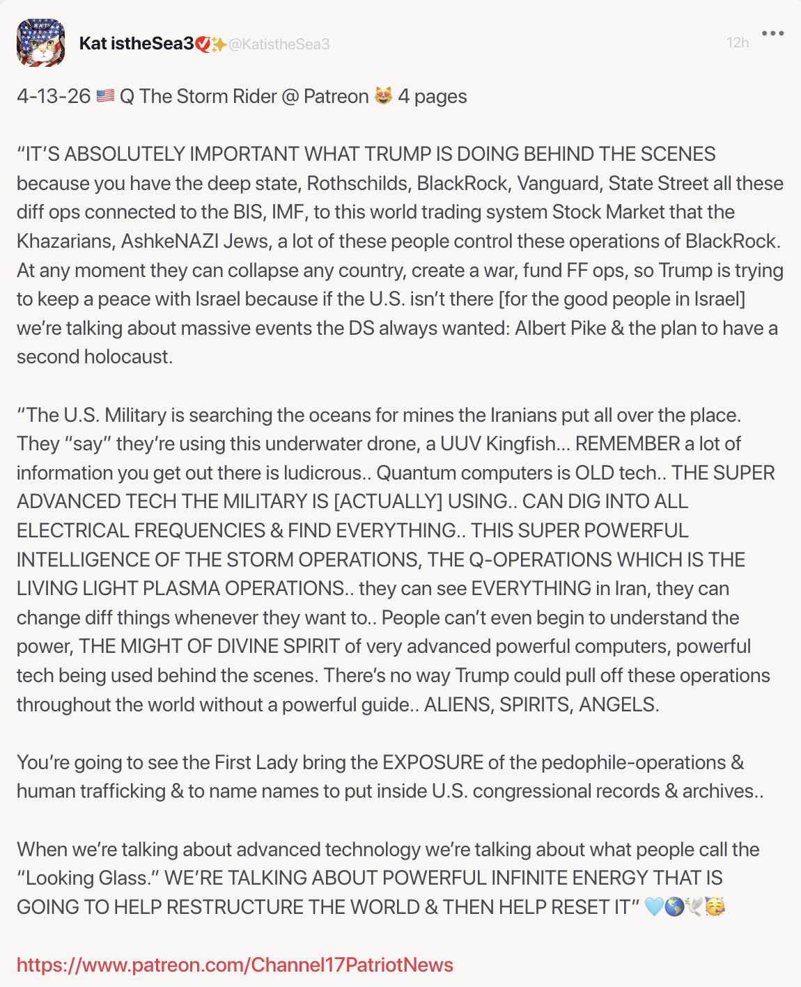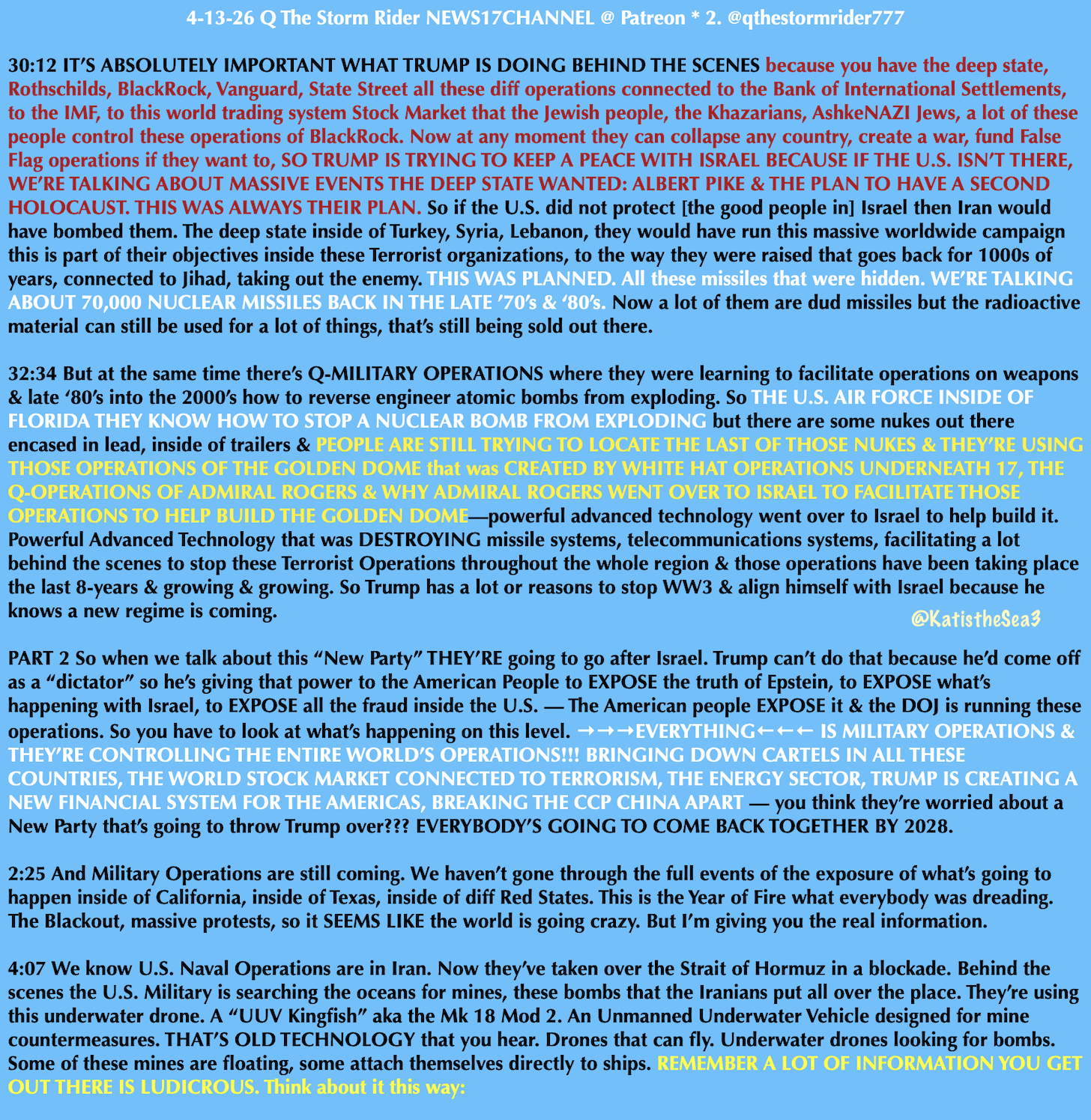 Kat’s transcript contains important excerpts. To hear and see QTSR delivering his videos, you can join his channel on Patreon with this link: