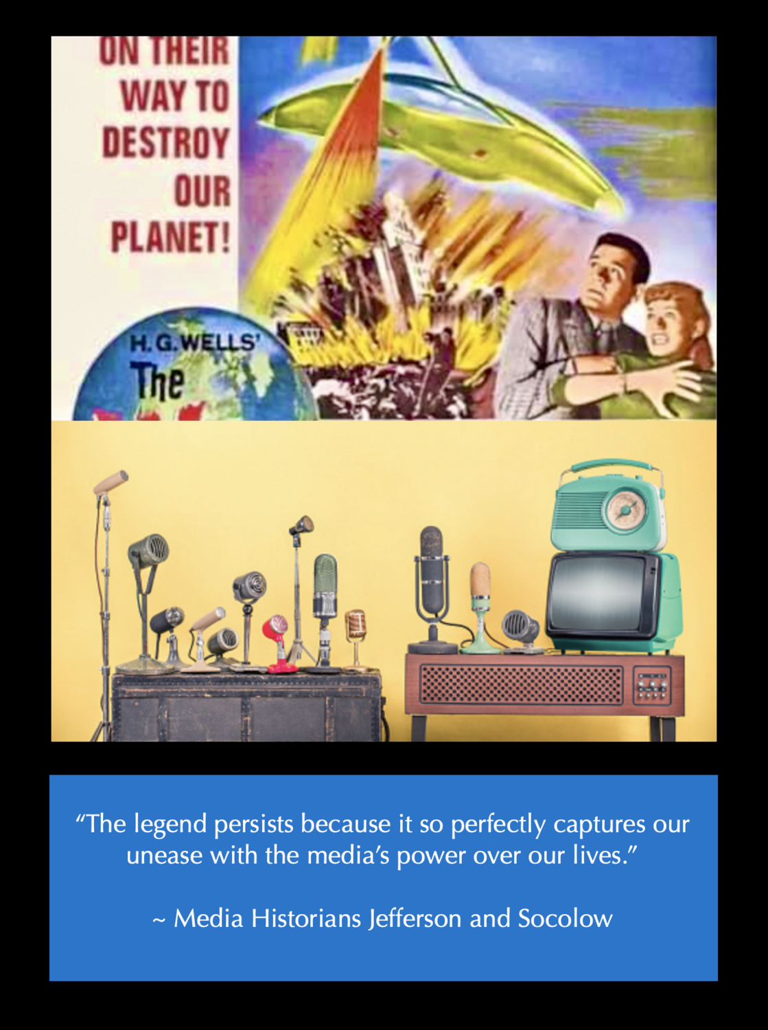 Some critics claim this was a planned experiment to gauge how the public would respond to fabricated emotionally driven information. “CBS ran subsequent celebrations of this program, such as ‘The Night America Trembled,’ and included it prominently in its 2003 celebrations of CBS’s 75th anniversary as a television broadcaster.” ~ Wiki