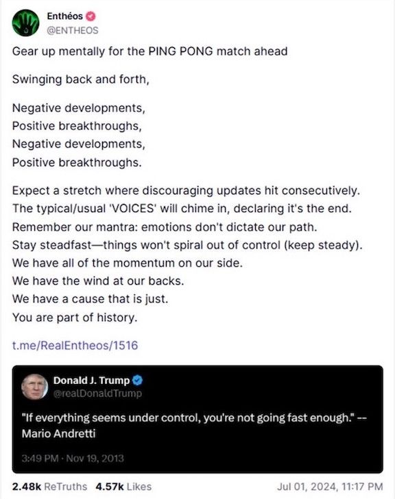 This White Hat movie is making some people feel crazy, especially those going back and forth from Truth via Military Intel and then to people spreading unvalidated and misguided fear porn claiming the dark hats are winning…led by Trump himself. Some very high visibility truthers have remained in first gear when we’re already on the autobahn watching very public White Hat WINS.