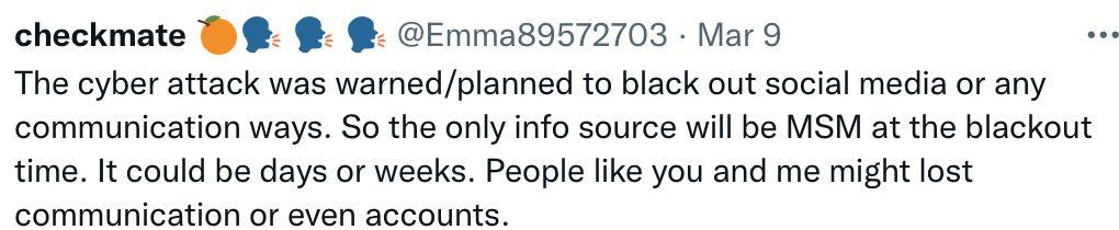 >>>> Now ANONS are fully aware FULL CENSORSHIP is taking place…..//// In the last days of before the Great CYBERATTACK AND BLACKOUT ( bye ATM. Banks, public full panic/ grocery stores closed ECT ECT ECT ECT ECT)///
