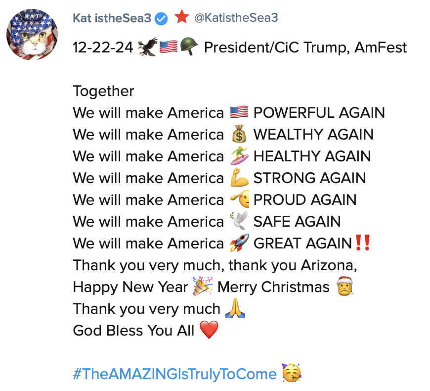 Love is the Ultimate PowerSave America Together Posted December 24, 2024 For The People ____________ ____________ ____________ HAPPY HOLIDAYS!!! ____________ _______ ForThePeople