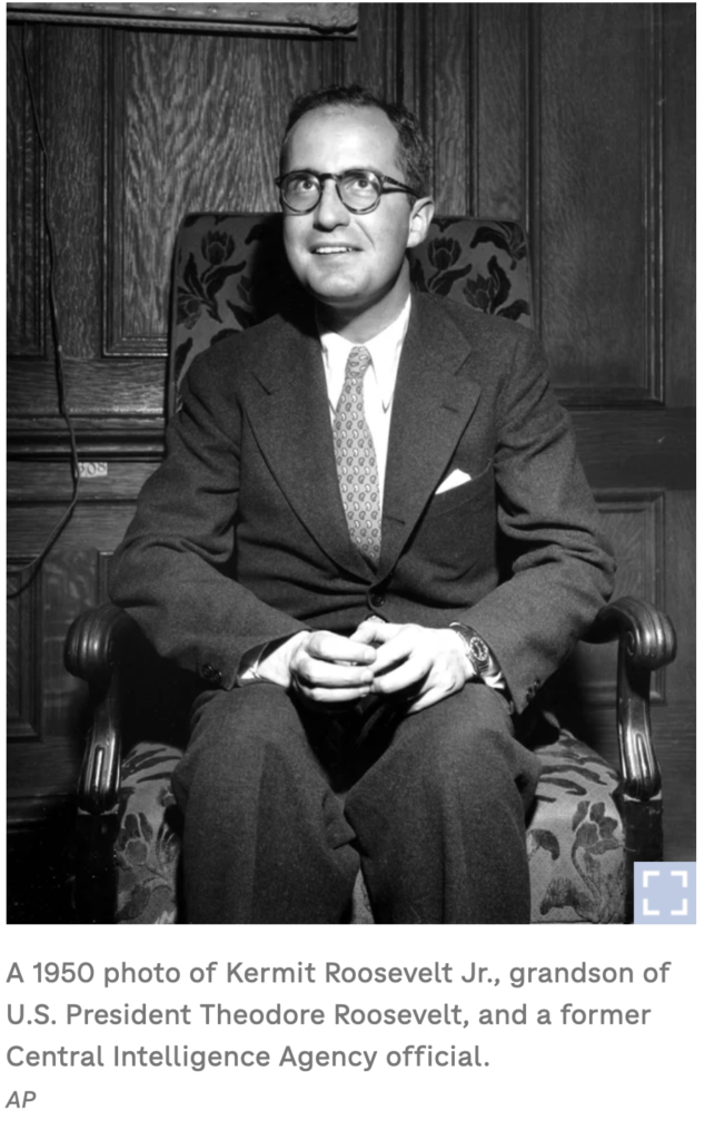 CIA front man Kermit Roosevelt Middle East bureau Chief is sent into Iran with 1,000,000 $$ dollars ( 12 million $ in today’s money) in U S tax paper money
