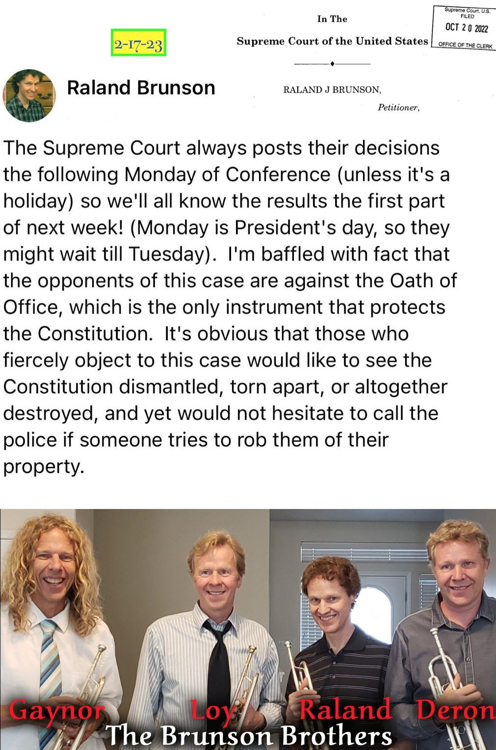 The Terrific Trumpeters known as the Brunson Brothers, have been diligently pursuing the TRUTH LAWFULLY for years, to reveal corruption surrounding the 2020 election and the inauguration of an illegitimate President in January 2021.