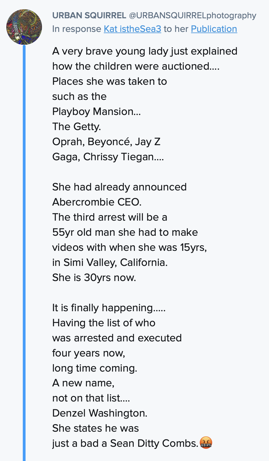Do you understand the world and the war that we are in? …Everybody keeps going back and saying, “Oh no, it’s not true… and then oops…, is JayZ on the news? Is he rock nation? Are you kidding me? I liked him.” Same thing you said about Diddy, same thing you’ll say about the BeeHive. It’s the same thing you’ll say about Ellen De-gene-res. It’s the same thing you’ll say about Oprah.