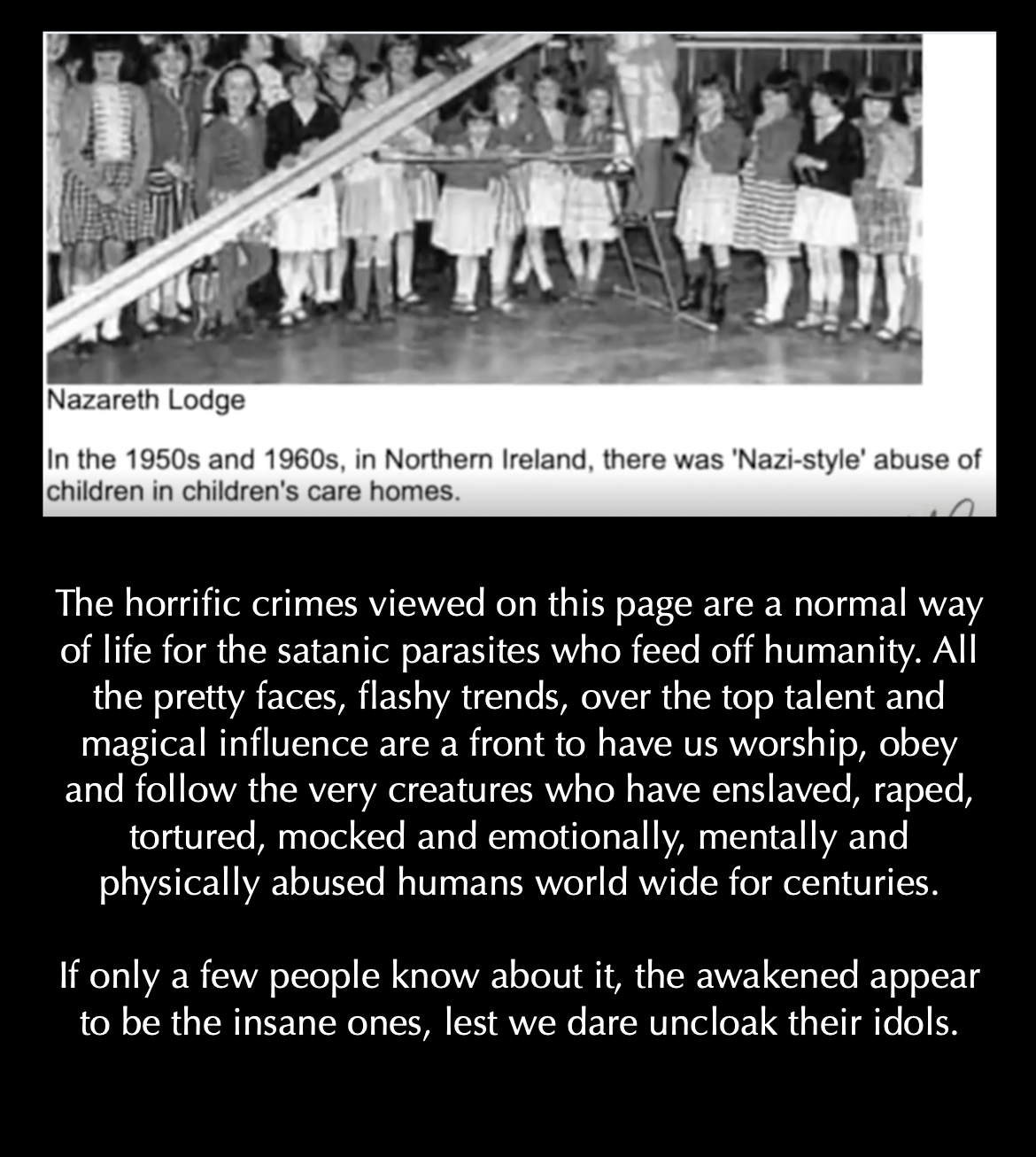 THESE CREATURES HAVE ALL BEEN IDOLIZED BY THE MASSES, WHILE THEY COLLECT THEIR MILLIONS, LOOK DOWN ON HARD WORKING PEOPLE AND CONTINUE TO RAPE OUR CHILDREN.