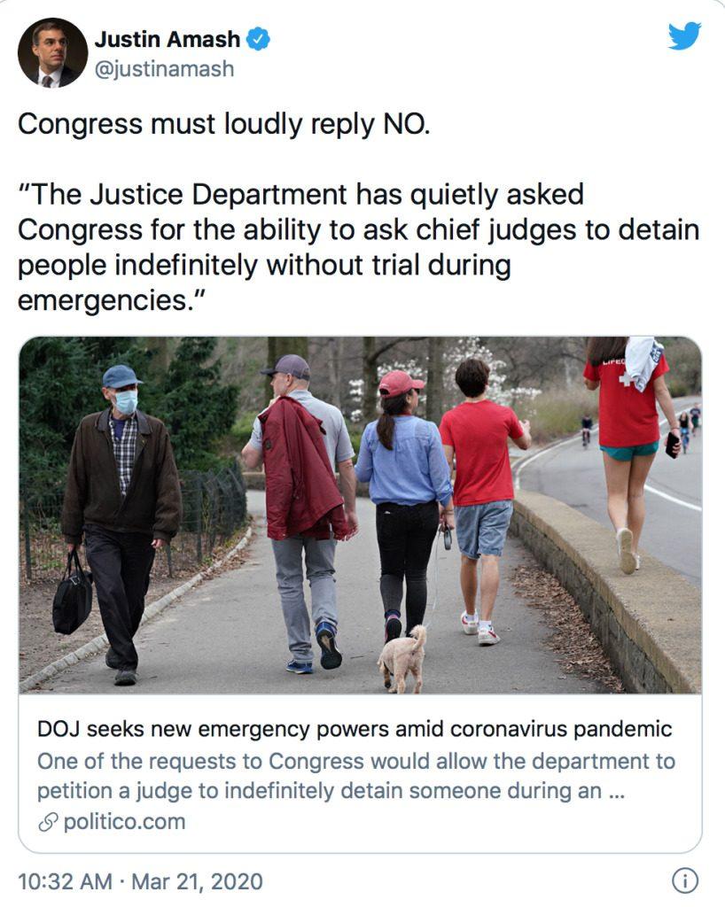 “President Donald Trump’s Department of Justice has sent documents to Congress requesting a suspension of the rules for habeas corpus, the right of a person who is arrested and to appear in an expeditious way before a judge to be formally charged.
