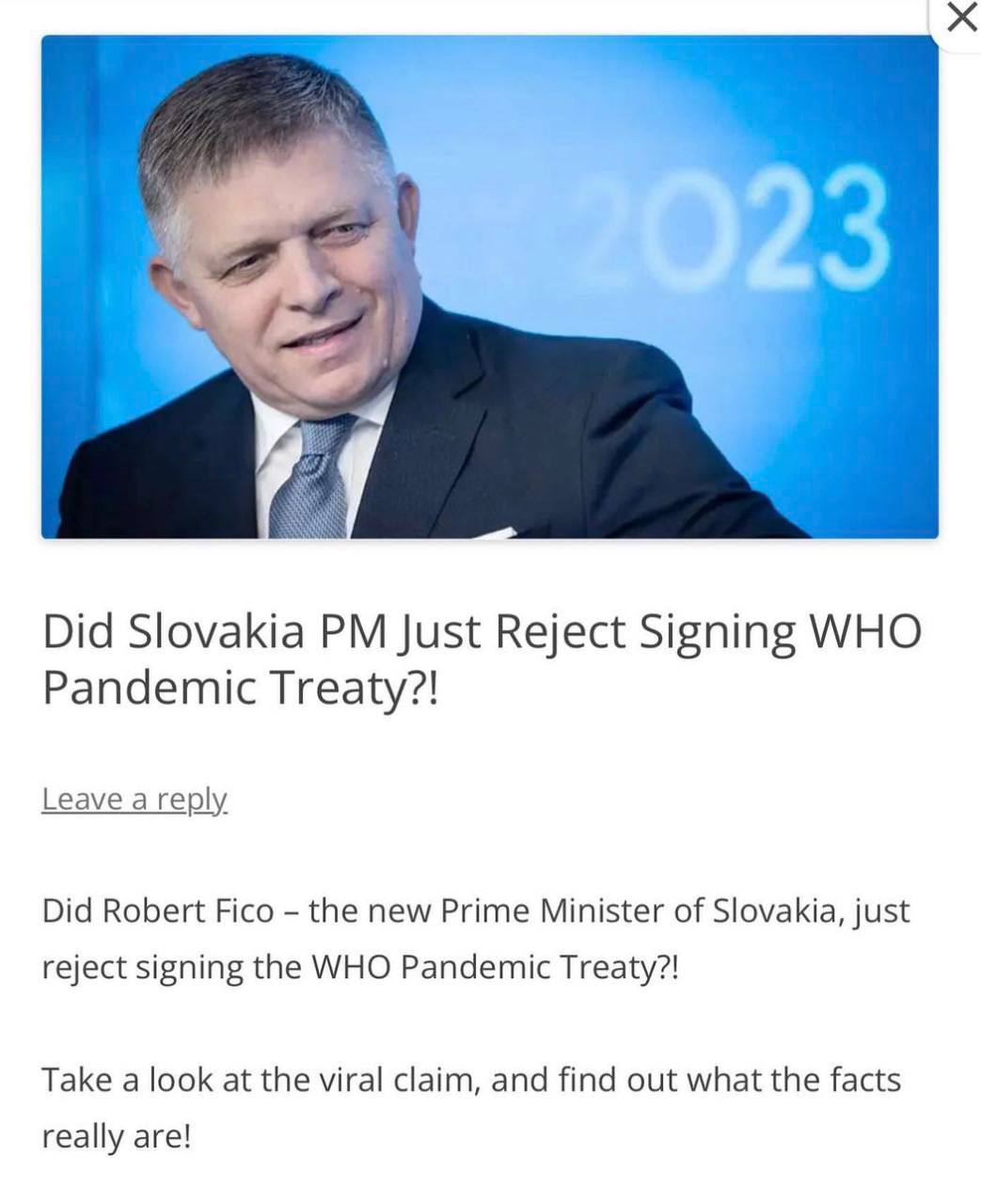 World Hoax Organization encourages Slovakian Prime Minster to sign their treaty to enslave his people.