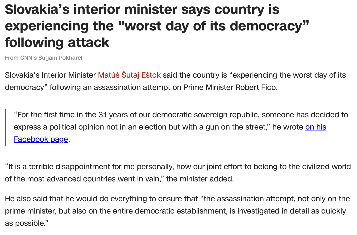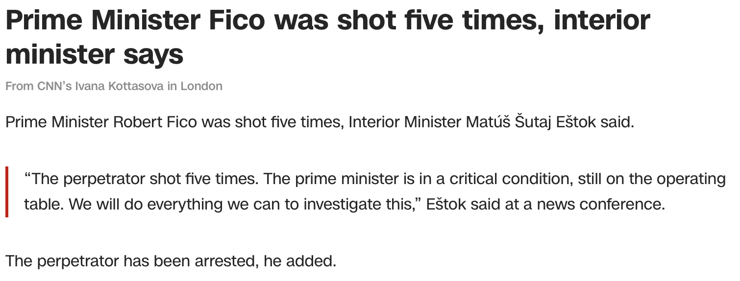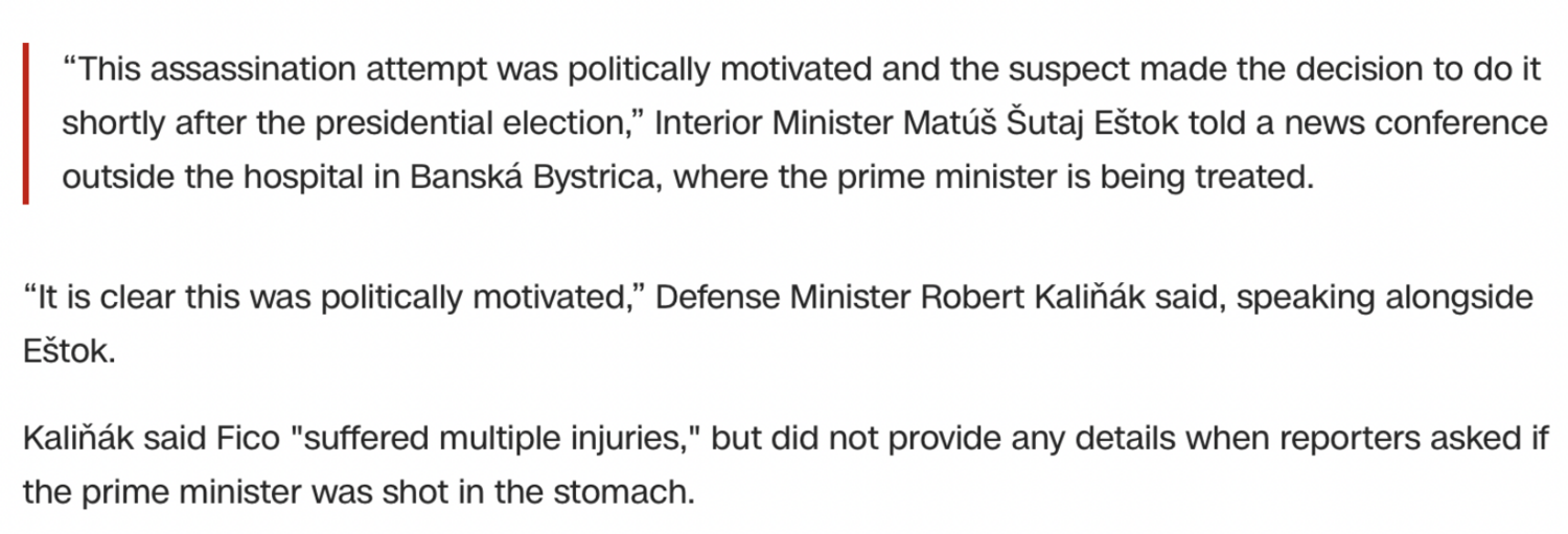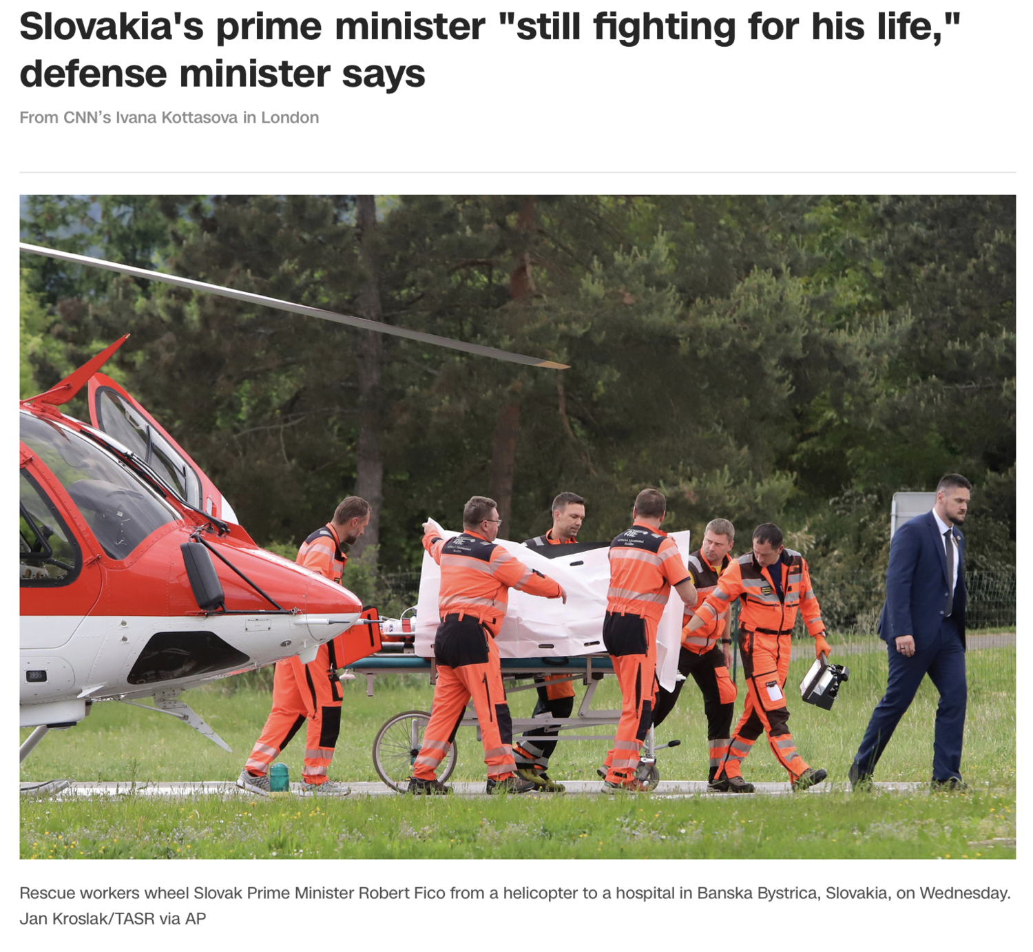 PRIME MINSTER ROBERT FICO OF SLOVAKIA IN CRITICAL CONDITION AFTER ASSASSINATION ATTEMPT