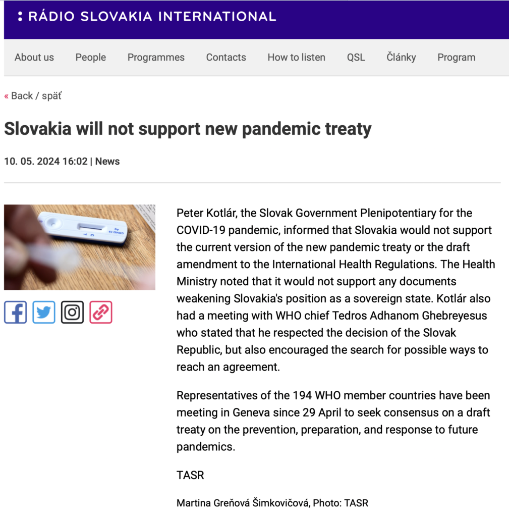 Robert Fico refuses to allow WHO to implement mandatory vaccinations on his people