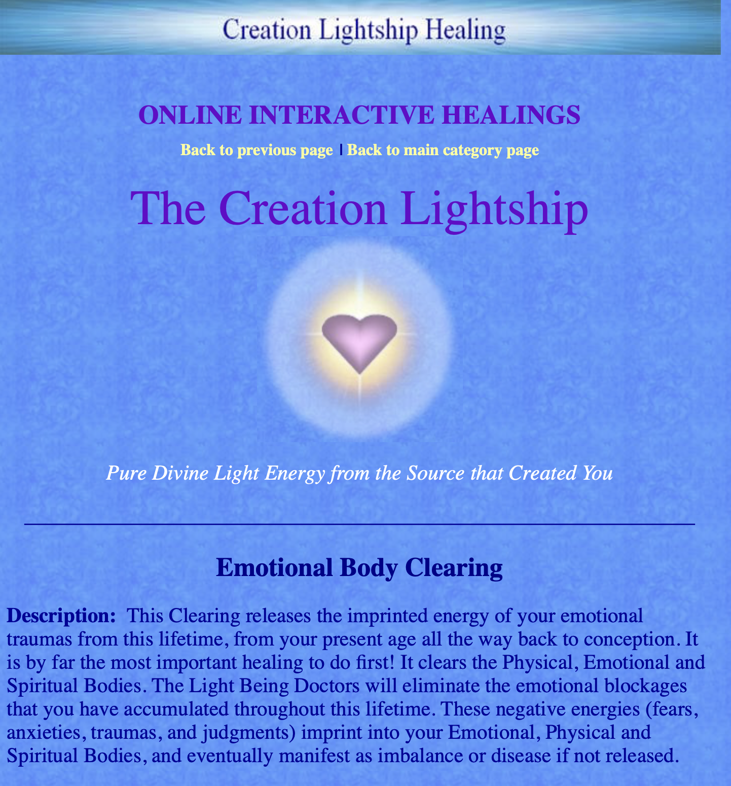 FTP has no business or financial relationship with the Creation Light Ship Website. Clearings are promoted because they work and they’ll make your life a lot more peaceful. This is a LIFETIME clearing. Purchase the unlimited version and you have it for life to use whenever you want.