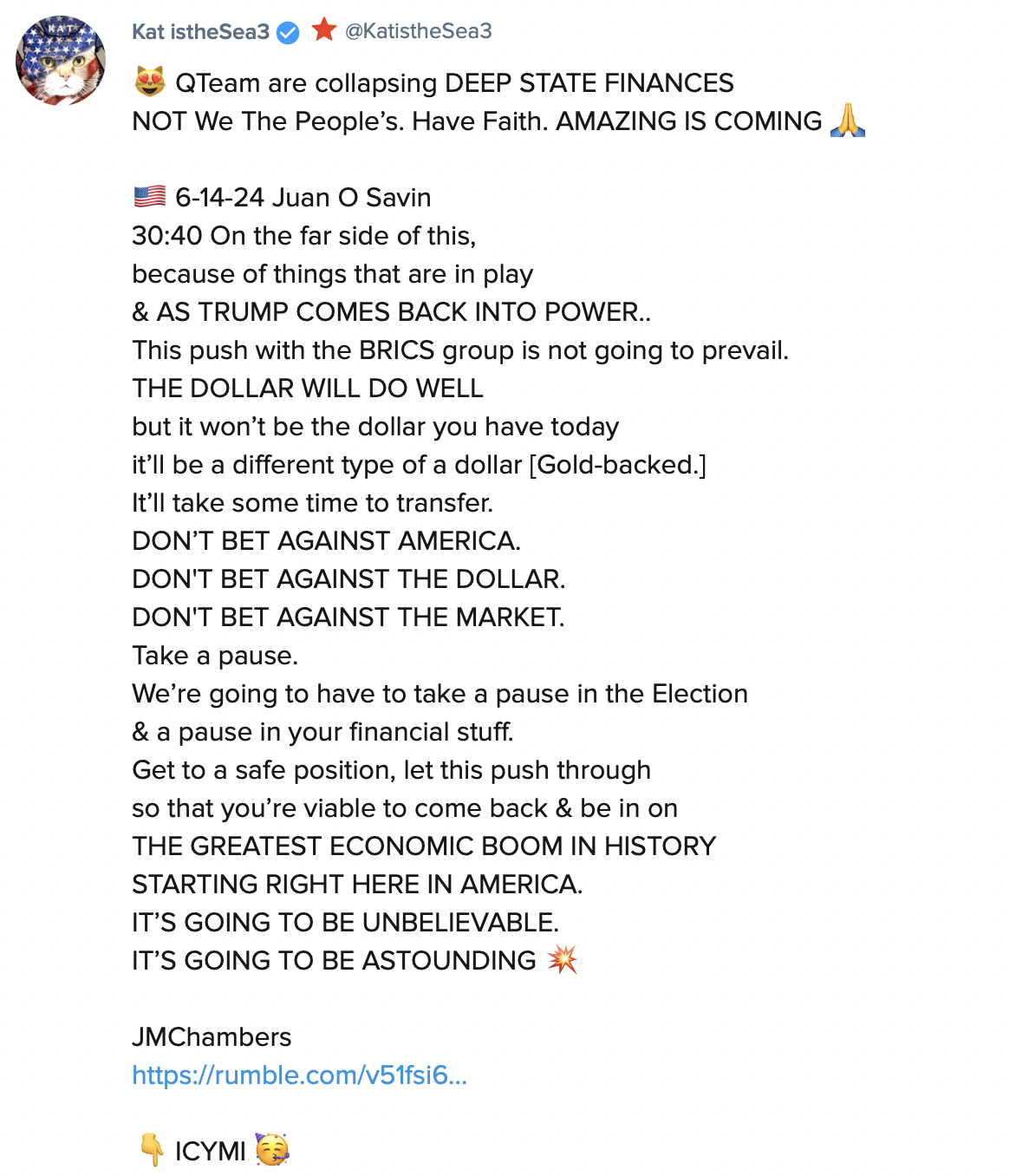 ( How do you think i knew all these events would unfold years ago and have been guiding you all along dear Patriots)